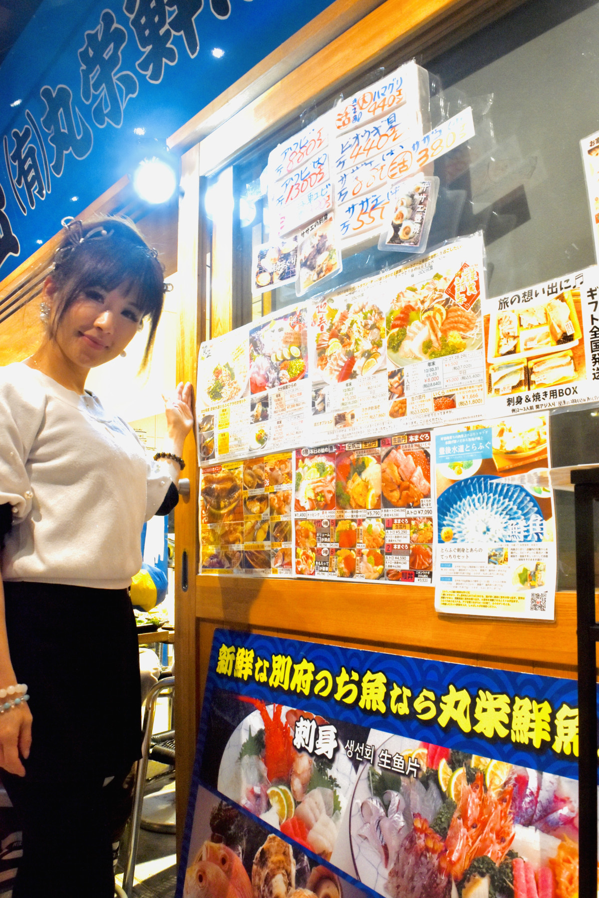 【「丸栄鮮魚」では県産魚の刺身の盛り合わせなどが人気】店を切り盛りする安田愛さんは「関アジ、関サバ、佐伯市特産のヒオウギ貝など地元の海鮮を味わってほしい。予約は早めに」と呼びかける