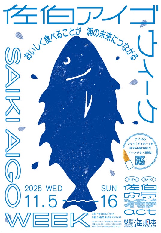 一般社団法人KIISAは、2025年11月5日(水)(「おいしい魚『アイゴ』を食べる日」)から16日(日)までの期間、佐伯市内の飲食店25店舗と連携し、磯焼けの一要因とされている植食性魚類のアイゴをフライにした“アイボー”を提供する「佐伯アイゴウィーク」を開催します。このイベントは、次世代へ豊かで美しい海を引き継ぐために、海を介して人と人とがつながる“日本財団「海と日本プロジェクト」”の一環です。