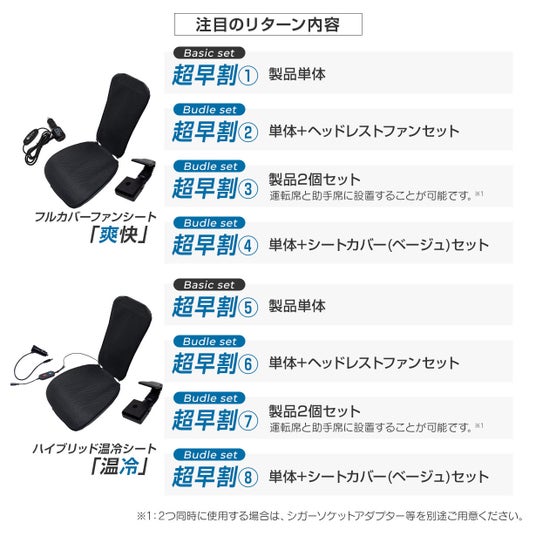 フルカバーファンシート「爽快」と、ヘッドレストファンの併用で全身を包み込む爽快感!