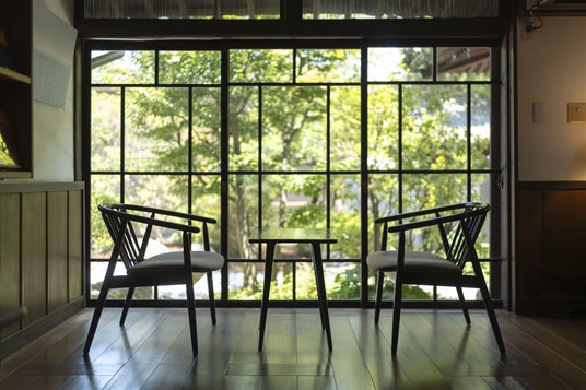 「森を想い、また自分と向き合う時間を」との思いから、ひのきや杉など5種類のエッセンシャルオイルが入った特別キットを進呈。専用のディフューザーでお好きな香りを楽しむことができます。お部屋には自然の草花と、久恒氏所蔵の書や絵が飾られ、お茶室のような凛とした空気を纏っています。(山側ツインルーム/2名1室 お一人様22,800~)