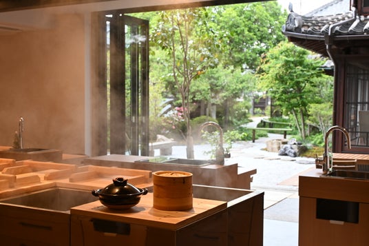 明治建築のカフェラウンジ、地獄蒸しキッチン、天然蒸気の「むし湯」、湯けむりピラティスなど様々なコンテンツと、長年研究してきた「蒸し料理」によって歴史ある鉄輪の湯治(とうじ)文化を新たな解釈でお客様にご提供いたします。