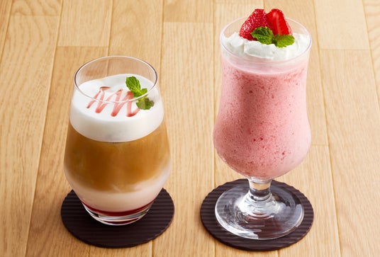 看板商品のパンケーキは、ブランドいちごの「あまおう」をふんだんに使用しました。甘酸っぱいいちごとチョコの王道ペアリングが織りなすこの時期だけの特別なスイーツです。また、香りと甘みの広がりをお楽しみいただけるドリンクはHOT&ICE 合わせて4品をご用意しました。