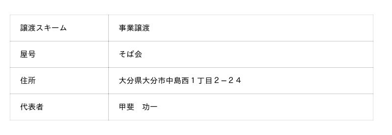 事業承継・M&Aマッチングプラットフォーム「TRANBI(トランビ)」を運営する株式会社トランビ(本社:東京都港区、代表取締役:高橋聡)は、大分市内の官庁街で11年にわたり営業を続ける手打ちそば店「そば会」(代表:甲斐 功一)が実名掲載の形で後継者募集を開始したことをお知らせいたします。