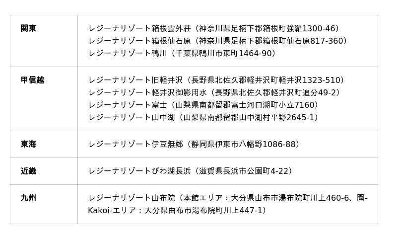 レジーナリゾート施設一覧